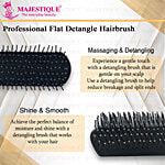 Majestique Flat Detangle Hair Brush - Ultra-Soft Bristles, Anti-Static, For Curly, Straight Hair