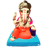 Unique Arts & Interiors Ganpati / Ganesha Idol / Murti Orange dhothi colour with standing -8''