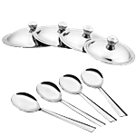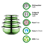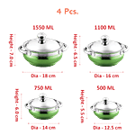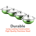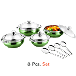 Jenson Green Handi with Lid and Serving Spoon is cookware with a wide bottom. It is made of good quality stainless steel. This cooker comes with an induction bottom for even distribution of heat, which helps in even cooking. It is suitable for induction and gas cooking, providing you with maximum utility. The sturdy handles help you in holding the cooker with ease. Its handi shape body makes it ideal for cooking a variety of cuisines.