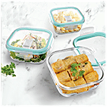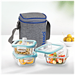 Treo Lunch Box - All Fresh Square Glass Tiffin Containers With Jacket, 320 ml (Set of 3)