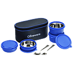 Oliveware Valley Lunch Box with Steel Spoon & Fork is made using only the best quality materials that are European Food Grade Virgin raw materials and following the most stringent of international standards. Ideal for office executives, students and school kids, contains 4 unique stainless steel air tight and spill proof containers with 2 medium containers (450 Ml each) and 2 small containers (300 Ml each) that keep food fresh and crisp for hours. Fork and Spoon also included in the product. The containers have air-tight plastic lids. This will prevent moisture from damaging your cooked food. These lids are also leak-proof so your food will not come out from the container even if it's semi-liquid.