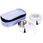 Oliveware Crunch Lunch Box - Stainless Steel, Plastic Lids, Blue, With Bag, Spill-proof, 350 ml (Set of 2)