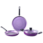 Wonderchef Tivoli Induction Bottom Non-Stick Coated Cookware Set - Aluminium, Purple, 4 pcs