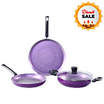Wonderchef Tivoli Non-Stick Cookware Set - Aluminium Body, Bakelite Handle, Purple, Induction