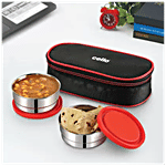 Cello Eco Bite Lunch Box - Stainless Steel, Red, For Office & School, Washable, Easy To Clean, 300 ml each (Set of 2)