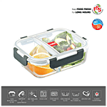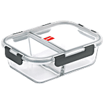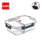 Cello Sleek Food safe Microwavable Rectangular Partition Borosilicate Container with Break Free Detachable Locks. It is a multipurpose storage container that has an elegant modern design. It is completely safe to use with your food and beverage. This jar is highly durable and made to last long.