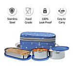 No Question askedMilton Corporate Lunch Box - Stainless Steel, Oval & Round Containers, Leakproof, Blue