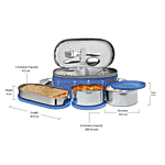Milton Corporate Lunch Box - Stainless Steel, Oval & Round Containers, Leakproof, Blue, 3 pcs