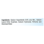 Sodium Hypochlorite 0.5% w/w Min. Sodium Lauryl Ether Sulphate, Sodium Hydroxide, Perfume And Deionised Water.