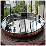 Decan Pure Copper Thali that contains 3 Katori's, 1 Spoon, 1 Glass, and 1 Halwa Plate. It is made of 100% food-grade material. It is a non-porous, hygienic dinnerware solution for your family. This set is easy to clean and non-stain. It has a unique modern design. It is a stackable dinnerware that is easy to store as it does not take up much space. They are microwave safe, lightweight and dishwasher safe.