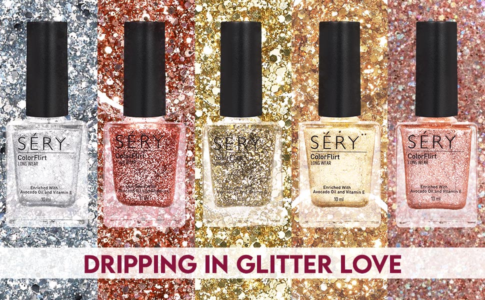 Sery Color Flirt Nail Paint Glitter - High Glossy Shine, Chip Resistant, Party Rose Gold