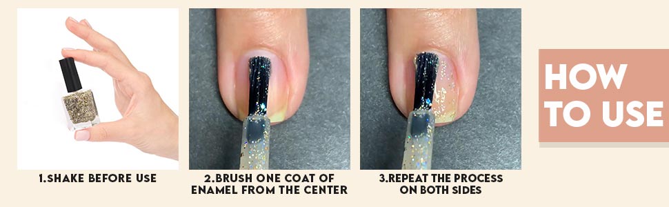• Brush one coat of enamel from the centre of your nail starting from the base of the tip.