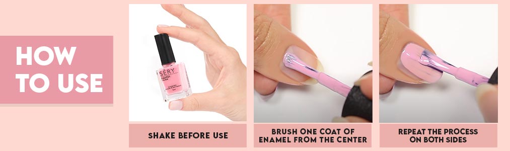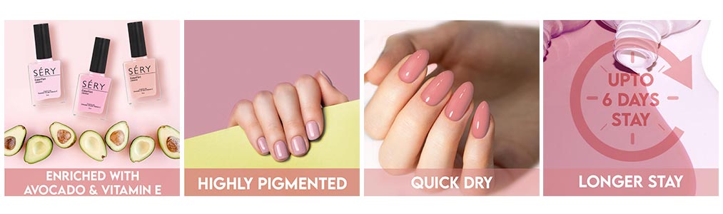 Paint your nails with the colour of flirt. SERY Colour flirt nail enamel is here to take care of nails with the colours that suit your busy lifestyle. This formulation is enriched with avocado oil and vitamin e to nourish your nails while keeping them strong. SERY nail paint range seals nails for 6 days with a glossy shine that gives the ultimate finishing results. The Chip-free and ultra-resistant formula offers unparalleled stability while settling easily and controlling the yellowing of your nails. Our formulation has easy application with convenient drying time, apply two coats for intense payoff and long wear. Let your nails have fun with colours!