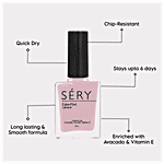 Paint your nails with the colour of flirt. SERY Colour flirt nail enamel is here to take care of nails with the colours that suit your busy lifestyle. This formulation is enriched with avocado oil and vitamin e to nourish your nails while keeping them strong. SERY nail paint range seals nails for 6 days with a glossy shine that gives the ultimate finishing results. The Chip-free and ultra-resistant formula offers unparalleled stability while settling easily and controlling the yellowing of your nails. Our formulation has easy application with convenient drying time, apply two coats for intense payoff and long wear. Let your nails have fun with colours!