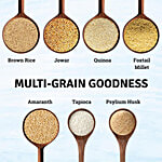 Organic Brown Rice, Organic Jowar, Organic Quinoa, Organic Foxtail Millet, Organic Amaranth, Tapioca, Psyllium Husk