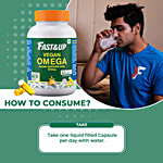 Fast&Up Vegan Omega is High Quality, Pure, and sourced from Marine Algae. It gives 250mg Algal DHA. It is Mercury Free, Burp free, and does not give any fishy aftertaste. It helps to maintain the normal cholesterol levels required for good cardiovascular health. It helps to maintain flexibility and mobility in joints. It also helps to reduce joint pain and inflammation. Omega 3 helps in improving focus and memory. It also contributes to enhancing the overall cognitive functions and proper brain development. Omega also helps in improving vision, reduces the risk of eye diseases, and helps to maintain healthy eyes. Omega plays a key role in boosting the body's immunity and improving the body's immune responses. To sum up, Omega helps in maintaining a healthy heart, joints, eyes, and brain and boosts the body's immunity. It is perfect daily nutrition for anyone who is a fitness enthusiast, who wants to maintain daily well-being, and someone who prefers a plant-based diet. The capsules are made with veg Hydroxypropyl methylcellulose and not with gelatin making them suitable for the vegan population. We have used V-FILLTM technology which ensures leakproof liquid-filled capsules and ensures enhanced nutrient absorption. It is 100% vegetarian, Gluten-free, Soy-free, Non-GMO, Fast absorbing, of High quality, Highly Bioavailable, Mercury Free, Burp Free, and does not give a fishy aftertaste. It is gentle on the stomach and is flavorless. Fast&Up Vegan Omega can be consumed once daily after breakfast, lunch, or any other meal.