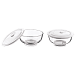 Lucky Glass Thailand Storage Bowl set with Airtight Lid keeps moisture out and allows you to safely store food items without the danger of outside elements affecting your food quality. It is made of high-quality glass which makes it highly durable and long-lasting. It is a transparent container which makes it easy to keep seeing the inside content without opening each container. The airtight seal keeps the food stored in this container fresh for a long period. It is designed for long-term storage and is stackable which makes it easy to store without consuming much space. This sleek-looking container goes well with any kitchen decor or tabletop. It is sturdy, hygienic, food-safe, scratch-resistant, dishwasher-safe, refrigerator/freezer-safe, and microwave safe (without a lid). Ideal to store several items like rice grains, wheat, sugar, flour, snacks or whatever else you need.
