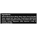 Refined Wheat Flour (Maida), Water, Sugar, Choco Chips, Soya Flour, Iodize Salt, Yeast, Edible Veg. Oil (PALM), Preservatives [282, 341(i)], Gluten, Emulsifiers[471, 481(i), 472(d)], Acidity Regulator(260), Improver (1100) and Antioxidants (300).