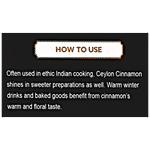 5:15PM Ceylon Cinnamon Sticks are 100% natural from srilanka. It's not the regular Cassia which you may have always bought in name of Cinnamon or Dalcheeni. It has very thin, soft layers hand rolled like a Cigar which can be crushed by hand. It has incredibly low coumarin & oil content which makes it lightly sweet with woody aftertaste. Ceylon Cinnamon empowers your dishes and goes very well with Tea, Coffee, Bakery and Sweet Dishes, and not for a dish like Biryani. Sri Lankan Cinnamon is for people who put Health above Taste.