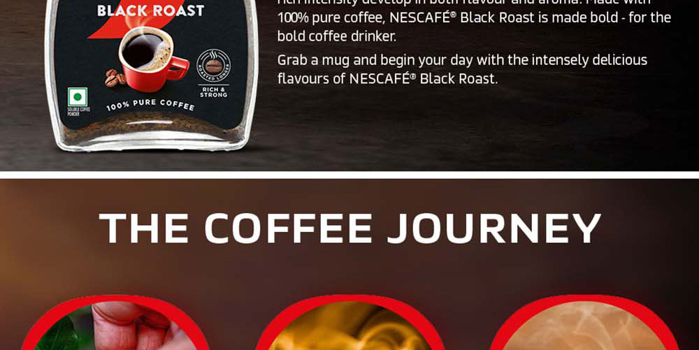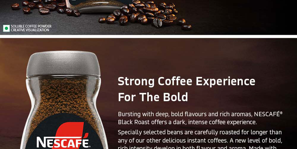 About the Product: Elevate your coffee experience with Nescafé Classic Black Roast, the world's favourite instant coffee brand. Crafted with carefully selected and roasted coffee beans, this rich and dark aromatic blend delivers an exceptional coffee experience. Bursting with intense, bold flavours and a wonderfully refreshing aroma, Nescafé Classic Black Roast is the ultimate companion to kickstart your day. Whether you're hustling through work or unwinding at night, a cup of this premium coffee is a delightful awakening for your senses. Immerse yourself in its intense, lingering taste and indulge in a moment of pure bliss. The fine coffee powder dissolves easily to create a rich, frothy instant coffee, making preparation quick and convenient. With over 75 years of experience, Nescafé ensures the best quality through sustainable sourcing practices and expert roasting techniques. Elevate your coffee routine with the darkest roast in the Nescafé range, delivering the strongest, most intense tasting experience bursting with pure coffee flavour.