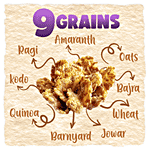 Oats, Wheat, Johar Bajra, Radi , Kado Millet, Barnyard Millet, Quinoa, Amarnath Maize, Almonds, Cashews, Raisins, Peanuts, Blueberries