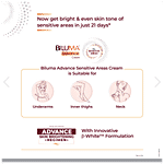 Biluma presents Advance Cream for Sensitive Areas. Brightens sensitive areas like underarms and inner thighs with visible results in 3 weeks. Soothes sensitive skin with tazman pepper, Non-irritant, Dermatologically Tested. Improves skin hydration with a blend of macademia nut oil, almond oil, shea butter and sodium hyaluronate. It is lightweight, does not clog pores, and skin cooling effect.