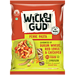 Durum Wheat (70%), Red Lentil (12%), Chickpea (8.7%), Split Moong Beans (Moong Dal), Brown Rice Flour, Tapioca Starch, and Stabilizer (Guar gum).