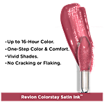 Revlon's ColorStay Satin Ink Liquid Lipstick is a surprisingly comfortable, brilliant, 16-hour liquid lip colour made with black currant seed oil and vitamin E that doesn't dry out your lips. It is a surprisingly comfortable, brilliant, long-lasting liquid lipstick that doesn't dry out your lips. Swipe this Revlon lipstick on for one-step comfort, colour, and a long-lasting satin sheen. This flexible formula with highly pigmented colours moves with your lips and contains black currant seed oil and vitamin E to prevent cracked lip colour. Enjoy up to 16 hours of wear while your lips feel comfortable all day.