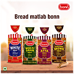 Bonn Whole Wheat Bread makes delicious sandwiches and is a great complement to your diet. A healthy alternative to regular maida bread is the Bonn Whole Wheat Bread since it has fibre, vitamins, and minerals. It helps regulate blood sugar levels, reduces cholesterol, and regulates bowel movements. Additionally, it lessens the risk of hypertension, stroke, gastrointestinal problems, and obesity. It also has a low-calorie count. Make delicious sandwiches, pinwheel rolls, croutons, French toast, and other dishes with this brown bread. Explore a wide range of bread options from Bonn like pizza base, multigrain bread, white bread, garlic rolls and more only on Big Basket.