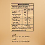 Nutrition per gram/ml: 100g Serving Size: 2 Table spoons (30 gm) Energy value (kcal): 342.28 Protein (g): 6.98 Total Carbohydrate (g): 20.27 Total Sugars (g): 2.87 Added sugar (g): 0.00 Total Fat (g): 25.92 Saturated fat (g): 1.59 Trans fat(g): 0.0 Cholesterol (mg): 0.0 Sodium (mg): 279.40