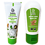 Healofy Naturals Stretch Mark Cream is a mild formulation that can help to reduce stretch marks on the body. It can reduce stretch marks due to excessive fat in the body or in the case of pregnancy. It is a gentle cream that can moisturise and hydrates the affected area. This cream is made with completely natural ingredients. This cream has a moisturising effect that can reduce and prevent stretch marks to appear from early pregnancy.