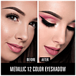Mattlook metallic 12 colors eyeshadow palette lets you create varied looks ranging from subtle everyday glam to dramatic eye makeup looks. The palette consists of 12 highly pigmented, long lasting and easy to blend eyeshadows. These every day warm toned shimmer eyeshadows will beautify your eyes like no other and make second glances a regular thing!