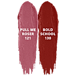 Plum Matterrific Lipstick Fab Festive Duo - Highly Pigmented, Lightweight, Moisturising, 4.2 g (Pull Me Roser 121, Bold School 130)