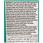 Gram Pulse Flour, Edible Vegetable Oil (Corn/Cotton/Palmolein), Spices & Condiments (Chilli Powder, Carom Seed, Black Pepper Powder (0.28%), Cinnamon Powder, Asafetida), Iodized Salt.