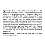Refined Wheat Flour (Maida), Refined Oil (Palm and Palmolein), Sugar, Dehydrated Potato Flakes [Potato (6%), Emulsifier (INS 471), Stabilizer (INS 45 i), Antioxidants (INS 223, INS 33)], Seasoning Powder [Iodised Salt, Sugar, Spices and Condiments, Acidifying Agents (INS 33, INS 296), Dry Mango Powder, Starch, Anticaking Agent (INS 551), Natural and Nature Identical Flavouring Substances], Liquid Glucose, Invert Syrup, Iodised Salt, Milk Solids, Raising Agents (INS 53 ii, INS 5 ii), Emulsifiers (INS 322 from Soy, INS 471), Flavour Enhancers (INS 627, INS 631), Flour Treatment Agents (INS 223, INS 111 i), Natural and Nature Identical Flavouring Substances