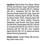 Refined Wheat Flour (Maida), Refined Oil (Palm and Palmolein), Sugar, Dehydrated Potato Flakes [Potato (6%), Emulsifier (INS 471), Stabilizer (INS 45 i), Antioxidants (INS 223, INS 33)], Seasoning Powder [Iodised Salt, Sugar, Spices and Condiments, Acidifying Agents (INS 33, INS 296), Dry Mango Powder, Starch, Anticaking Agent (INS 551), Natural and Nature Identical Flavouring Substances], Liquid Glucose, Invert Syrup, Iodised Salt, Milk Solids, Raising Agents (INS 53 ii, INS 5 ii), Emulsifiers (INS 322 from Soy, INS 471), Flavour Enhancers (INS 627, INS 631), Flour Treatment Agents (INS 223, INS 111 i), Natural and Nature Identical Flavouring Substances