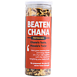 Beaten Chana or chickpeas by Omay foods is a high-quality binge-eating snack. They are charged with proteins and are prepared using no oil as they are roasted with some spices to reach the perfect taste and health. Here goes desi chana - in the pressed form (chana jor) with tangy masala on a fun ride together, with the mission of delighting your taste buds. Be prepared, for you can never have enough!