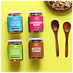 Omay Foods Healthy Dhamaka Gift Box - Strawberry Blast, Khatta Meetha, Oats & Moong, Beaten Chana
