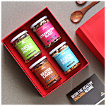 Omay Foods Healthy Dhamaka Gift Box - Strawberry Blast, Khatta Meetha, Oats & Moong, Beaten Chana, 4 pcs