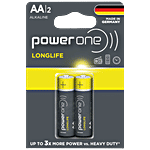 Power One Alkaline Battery - Longlife, AA, 2 pcs Blister Pack