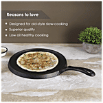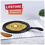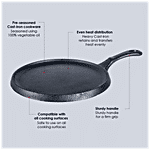 Wonderchef Forza Pre-seasoned Cast Iron Dosa tawa is made with high-quality cast iron material, which helps in the even distribution of heat. It is an ideal cookware for any kitchen. It is easy to clean and wash and is long-lasting. This cookware is used for preparing and cooking food. It doesn't burn food and retains essential minerals in food. Tawa is used to make dosa, chapatti, roti, paratha, etc. It has a comfortable elegant matte finish handle, which makes it easy to carry and handle. It is compatible with both gas stoves as well as induction.
