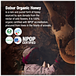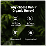 Dabur Organic Honey is NPOP organic certified honey from the house of Dabur Honey – the World’s No 1 Honey brand. This thick delicious honey is sourced from the hives of Apis Dorsata honeybees nestled in deep forests. No chemicals or pesticides are used within a 5 km vicinity of these hives, thereby ensuring that honeybees collect nectar only from organically grown wildflowers. It is raw, unprocessed and unpasteurized honey which is naturally rich in antioxidants to help boost immunity. It is a good source of nutrition and is considered useful in coughs and colds. It offers multiple health benefits like improved stamina, better digestion, good heart health & maintaining a healthy lifestyle. Dabur Organic Honey is 100% compliant with all testing parameters mandated by FSSAI for purity guarantee. Kickstart your day with Dabur Organic Honey and make a healthy choice. Buy now.
