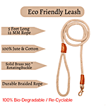 Made with 100% Cotton and Natural Jute. Metal accessories are made of Solid Brass. Leather Trims are Hand Stitched with heavy-duty thread for better results. The rope has beautiful Leather Trim, which gives a style and standard to the leash and pet owner. It can be cleaned with water. This product is made entirely with Indian raw materials.