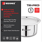Bergner Tri-Pro Triply Stainless Steel Tope / Patila With Lid - 16 cm, Induction Base, 2.1 l