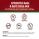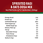 Start your day right with our Sprouted Ragi & Oats Dosa mix. It is high in protein, low in fat and rich in dietary fibre making it a super healthy breakfast option. It can be made in about 10 minutes and is ideal for a healthy breakfast or an evening snack. Made from 100% natural ingredients, our Sprouted Ragi & Oats Dosa offers the ideal balance between flavour and health! A Delicious way to have Sprouted Ragi & Oats. It is 100 % natural and has no preservatives, no artificial colour or flavour and no added sodium bicarbonate (baking soda/flour). Makes 25-26 Dosas (13 Servings).