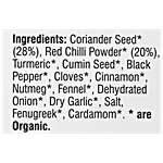 Coriander Seed* (28%), Red Chilli Powder* (20% ), Turmeric, Cumin Seed*, Black Pepper*, Cloves*, Cinnamon*, Nutmeg, Fennel*, Dehydrated Onion*, Dry Garlic*, Salt, Fenugreek*, Cardamom*. *are Organic.