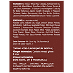Refined Wheat Flour(Maida), Refined Palm Oil, Iodized salt, Wheat Gluten, Soya Sauce, Black Pepper, Tomato & Chilli Sauce, Humectant(Tri Sodium Ortho Phosphate E-399(iii) As Water Retention agent), Acidity Regulator (Potassium Carbonate, Sodium Bicarbonate), Guar Gum Act As Stabiliser, Calcium Carbonate act As Stabiliser, Chicken Flavour & Caramel.