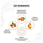 Our almond conditioner is loaded with the goodness of sweet almond oil that is naturally rich in vitamin e, proteins, vitamins and fatty acids, which nourishes brittle hair, helps to promote growth and prevents split ends. It also helps to provide intense hydration to dry, damaged and frizzy hair. Vitamin e helps to seal moisture and adds extra bounce and shine. Argan oil provides additional benefits of strengthening hair and protecting against further damage and breakage. Provides long-lasting softness, shine, and free-flowing and tangle-free hair. Use every time after shampoo for intense moisturization and nourishment.