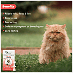 Contains Fipronil and (S)-Methoprene which act as an effective combination and wipe out ticks, fleas, lice and mites Forms a protective barrier under the skin against ectoparasites Breaks flea life cycle, by acting on flea eggs and larva, thus preventing Flea Allergy Dermatitis Kills ticks and helps avoid Tick-borne fever, Averts Sarcoptic Mange and Ear Mite Infection by controlling mites Forms a protective barrier under the skin against ectoparasites, Wear gloves and apply between your cat’s shoulder blades in an area that can't be licked to avoid toxic intake. Bathe only after 5 days of application.