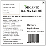 Mothers Fresh Foods Organic Rajma Jammu kidney beans are also a very good source of potassium and magnesium along with soluble fibre and protein which helps maintain blood pressure within normal range and protects the overall heart health. Natureland Organic foods rajma Jammu has been cultivated in the foothills of the Himalayas. It is very high in protein content and delicious and nutritious. Rajma Jammu is machine cleaned and handpicked, before packing to ensure its purity and hygiene, which is healthier, tastier and has high nutritional value, it is also easy to digest and cook. It is very high in protein content and delicious and nutritious. It is easy to prepare and digest. These kidney-shaped beans are a rich source of protein and are a favourite of health freaks.